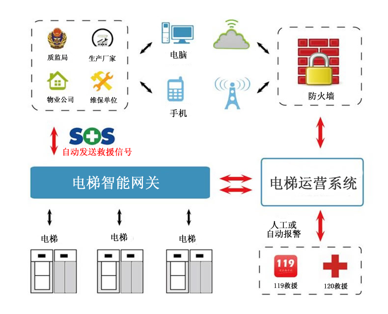 以G22恒峰集团 G22工业智能网关为核心,顺利获得串行/网口通信获取电梯控制器数据并进行本地计算分析后,把这些数据顺利获得工业智能网关有线或无线网络安全可靠地传输到后台服务器,G22恒峰集团 G22工业智能网关还具有短信发送和接收功能,可将电梯故障信息发送到维保人员、物业公司人员、应急处置服务平台人员的手机上,出现紧急情况,实现第一时间报警。电梯运行安全物联监控平台,顺利获得调取后台服务器的数据,起到了统一管理、统一指挥、统一调度的功能。