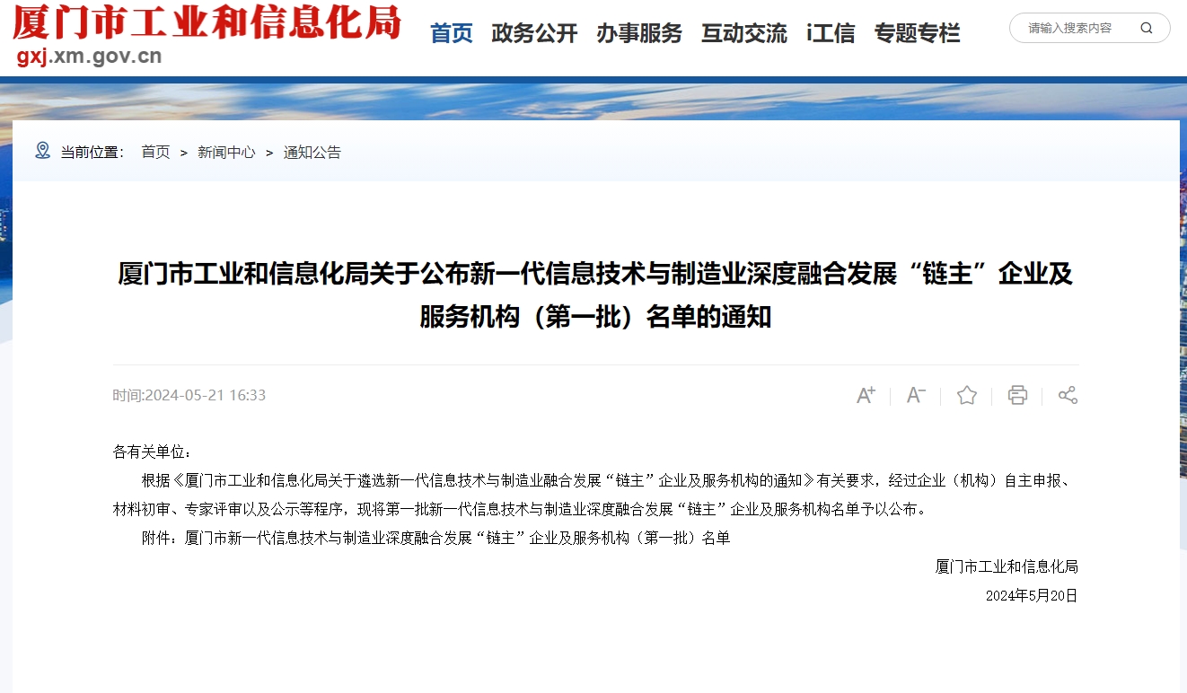 近期,厦门市工业和信息化局公示了【厦门市新一代信息技术与制造业融合开展“链主”企业及服务组织(第一批)名单】的遴选结果,G22恒峰集团 G22凭借专业的数字化转型服务能力和高质量的落地服务经验,入选厦门市首批“新一代信息技术与制造业深度融合开展云服务商(平台)”。