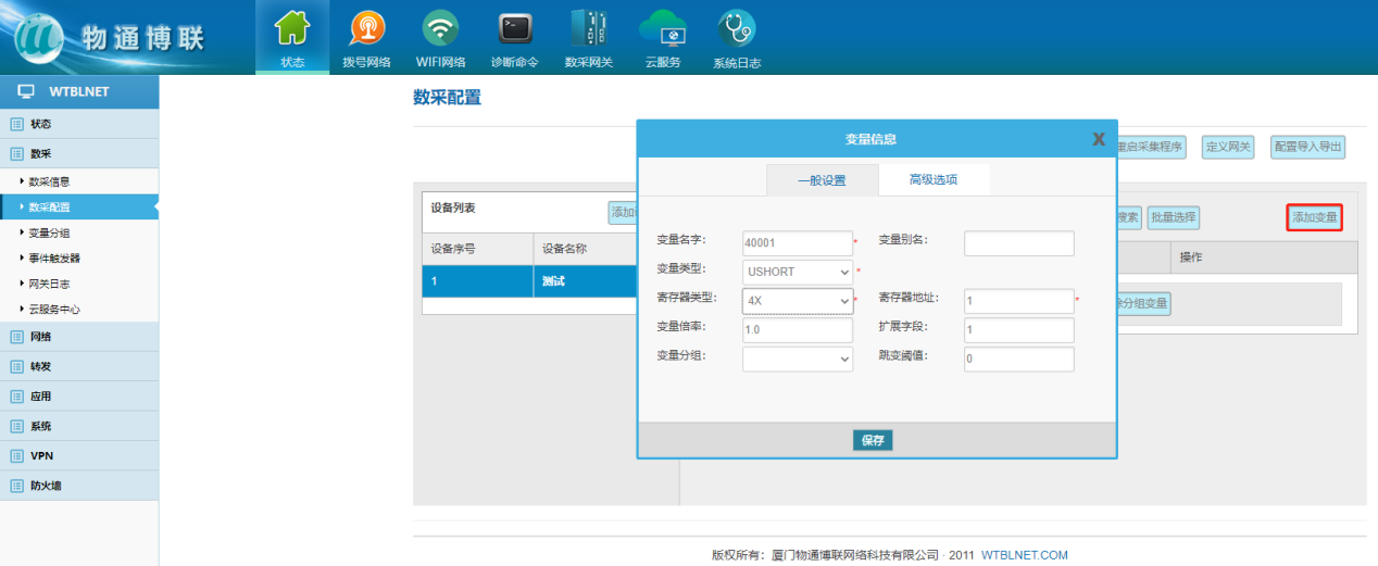 ② 在新增的设备下添加变量,填写变量的偏移地址