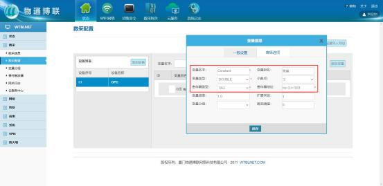 输入设备名称(任意),设备序号(任意,注意同一网关下的设备序号不能重复),从站地址(设备站号),通信协议(OPC UA),IP 地址(设备 IP 地址)以及端口号(设备端口号),采集周期根据自身需求设置,然后点击保存。