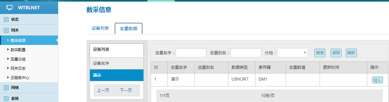 网关---数采配置---添加设备---添加变量---重启采集程序并生效新的配置