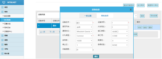 网络---可选WIFI网络、拨号网络(需要在网关通电前插入SIM卡、接好4G天线,开启拨号网络)、WAN外网。