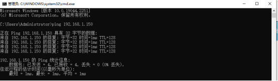 1、将PLC与网关顺利获得LAN口相连接,顺利获得设备快线(维护通道搭建成功后)在远程电脑上使用cmdpingPLC的IP地址(192.168.1.150为PLC的IP地址)
