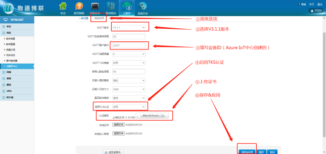 选择“微软云平台”,打开G22恒峰集团 G22网关WEB界面,新建一个连接中心,中心类型选择微软IoT云平台,输入相应信息,勾选启用,点击“添加”