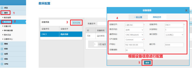 | CNC itsubishi | 网口 | CNC IP地址 | 设备实际端口号 |