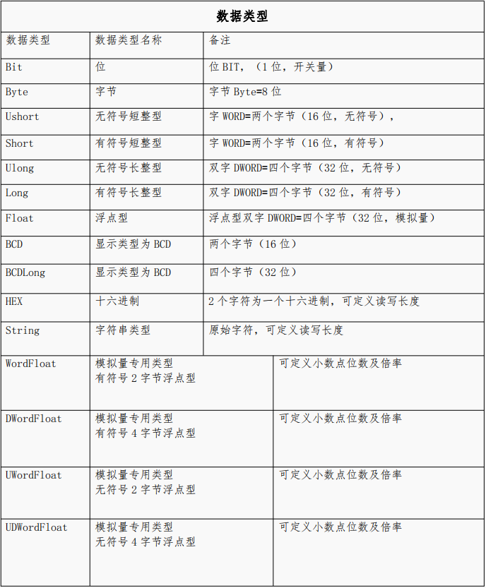 下载中心 视频中心 常见问题 售后服务 工业网关 设备快线 数据云平台 联网设备 问答百科 网关支持采集的数据类型有哪些? 时间:2022-10-26 09:39:53 点击:5700 关键词:工业网关,数据采集,数据类型 问题:网关支持采集的数据类型有哪些? 回答:网关支持采集的数据类型如下表 : 上一篇:工业智能网关会运行时会自动重启怎么处理? 下一篇: 网关采集modbus协议设备时,寄存器类型和地址如何选择?