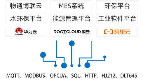 支持顺利获得MQTT、MODBUS、OPCUA、SQL、HTTP数据库等方式接入远端软件平台(包含:G22恒峰集团 G22云平台,客户自主开发的云平台,根云、美云、华为、阿里、百度、微软等IOT云平台,组态软件、MES系统、ERP系统等工业软件)