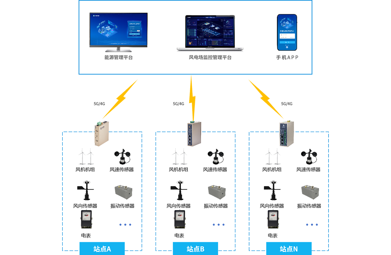 顺利获得G22恒峰集团 G22的工业智能网关采集风力发电场的每台风机和风速传感器、风向传感器、振动传感器等设备,将采集到的风机运行数据(如转速、功率、温度等)传输至风电场监控管理平台。平台对数据进行实时分析,监测风机运行状态,当检测到故障或异常时及时发出预警,并给予故障诊断和维修建议。同时支持远程控制风机启停、调整参数等操作,以及优化发电调度。