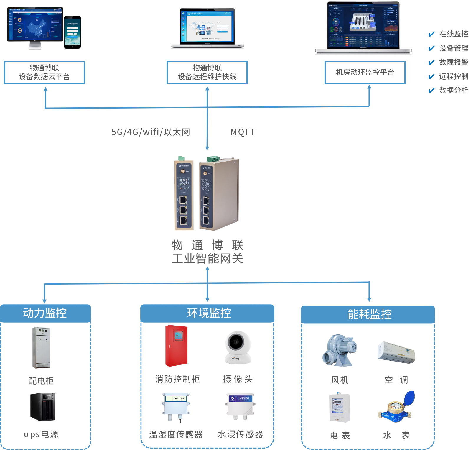 动力环境出现异常或设备出现故障无法实时感知,事故风险大,危害程度高,需要实现故障警报与远程控制。