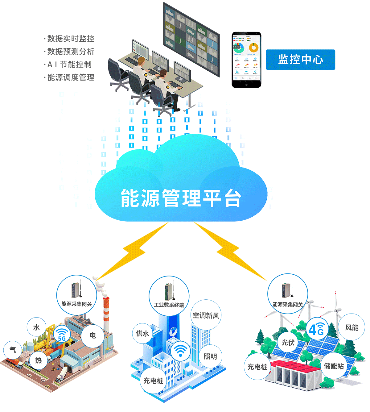 适用于工厂、园区、小区、电力、楼宇、公共设施等多种用能场景。