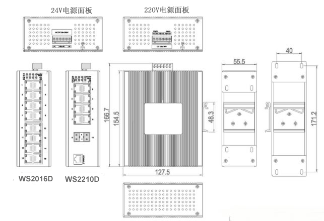WS1016E系列是一款16口百兆非网管工业以太网交换机,支持16个10/100Base-T(X)电口,标准的DIN-3.5导轨安装方式,满足高带宽业务传输需求的电力,视频监控,工厂自动化,石油化工等工业应用领域。