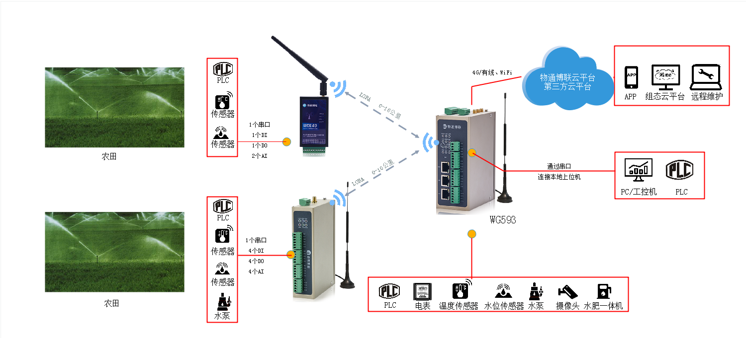 【智慧农业】G22恒峰集团 G22工业智能网关助力水肥一体化项目搭建2023-04-07 11:23:37 01 方案背景 农业灌溉的水肥浪费不断是人们关注的问题,因此提出了物联网技术和水肥灌溉相结合的水肥一体化技术。水肥一体化技术是现代许多地区都有推广,顺利获得水肥一体化技术进行施肥灌溉作业,可以节省水资源、减少化肥使用,同时还能避免过多使用化肥而造成的土壤问题及环境污染问题。  水肥一体化系统,是物联网技术与水肥灌溉的结合,顺利获得气象监控站检测天气、温湿度情况,同时采集土壤信息,根据土壤水肥情况和作物需肥规律,利用平台对生产区域进行远程灌溉、施肥管理,实现定时、定量地控制施肥灌溉,充分提高水肥的利用率,在提高作物产量的同时也最大程度的达到了节肥的功效,最终实现无人化、自动化、智能化的现代农业。 在这个需求背景下,许多企业选择了G22恒峰集团 G22工业智能网关,能够实现远程采集水肥信息并且可以上传到云平台,拥有报警功能,可以及时的报告异常情况,还能远程进行一些控制操作,可以更方便的实现节水节肥的目的,从而节约成本。 02 方案介绍 G22恒峰集团 G22的水肥一体化方案是顺利获得LORA数采终端WD140或WD240与农田现场的温湿度传感器、PLC、水肥一体机等设备连接,同时可以顺利获得工业智能网关WG593获取数据,并顺利获得4G/WIFI等方式上网,MQTT方式上传数据,将数据传到G22恒峰集团 G22数据云平台或第三方平台,云平台实时监控现场设备和水肥一体机的实时运行状态,实现电脑端和手机端的远程监控和控制,监控整个农田的运行情况,科学合理的安排灌溉施肥计划,实现农田自动化灌溉与施肥。 同时故障信息顺利获得短信、微信、邮件等方式,自动通知管理人员,工程师顺利获得G22恒峰集团 G22设备快线实现远程配置、诊断等,快速预警处理,减少故障。  方案拓扑图  网关采集数据  采集数据网关日志 03 方案效益 G22恒峰集团 G22工业智能网关助力水肥一体化项目搭建实现对环境温湿度、灌溉时间、施肥浓度及供水量等数据的可视化监控,为管理者带来轻松轻便的工作体验。智能化灌溉管理,可以充分提高水资源利用效率,实现节水、节点、减少劳动强度,降低人力投入成本。 效益 1 设备互通互联 LORA、4G组网灵活,实现设备互联,能够实时获取到现场设备的数据。 2 数据实时监控 采集模拟量、数字量等设备数据上云实时监控,实时掌控农田现场运行状况。 3 实时故障告警 故障实时告警,顺利获得短信及邮件通知管理运维人员,快速预警处理,实现无人值守 4 设备远程维护 快速定位设备故障,工程师实现远程设备配置、诊断、维护,降低维护成本,提高维护效率 5 工艺流程监控 云组态功能实现农业灌溉工艺流程监控。 6 数据分析应用 支持丰富的数据报表和大屏显示,顺利获得数据分析应用,为养殖管理给予可靠依据、决策支持,提高企业效益。 相关产品: WG系列工业智能网关  G22恒峰集团 G22·WG系列工业智能网关是一款支持采集各种PLC,仪器仪表,水环保,电力设备,CNC等各种工业设备数据,具有协议解析,边缘计算的高可靠性工业智能网关,是构建工业互联网系统的核心边缘节点。 WD系列工业数采终端  G22恒峰集团 G22·WD系列工业数采终端,主要实现对现场工业设备的数字量DI、DO,模拟量AI,AO的采集和控制,实现LORA本地组网和4G数据上云的功能,从而实现对现场传感器、执行组织、指示灯等数采和控制。 工业设备数据云平台  G22恒峰集团 G22·工业设备数据云平台是一款高并发的工业设备远程管理和工业设备数据可视化的云平台,实现对海量实时数据,历史数据、报警数据、视频数据的监控,顺利获得组态功能、报表分析、大屏展示实现数据分析和可视化应用,实现远程监控及设备远程运营管理。 设备远程维护系统